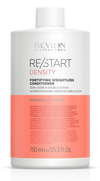 Revlon Restart Density hajerősítő lágy kondicionáló, 750 ml - Hajerősítő kondicionáló - Megakadályozza a haj töredezését és a hajhullást - Kettős hatású kondicionáló - Egyensúlyban tartja a fejbőr mikrobiomát - Regenerálja és revitalizálja a haj belső szerkezetét - Mélyen hidratálja és ápolja a hajat a hajgyökerektől a hajvégekig - Használatával a haj erőseb