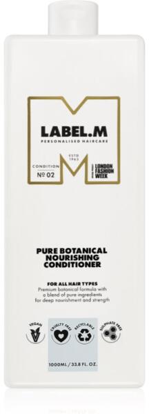 label. m Pure Botanical Nourishing Conditioner, 1000 ml, Hajkondicionálók nőknek, A hajformázó készítmény segít megformálni a vágyott frizurát és megőrizni azt egész nap a kívánt formájában. Tulajdonságok: szükséges mértékben hidratál ragyogó fényt ad a hajnak helyreállítja a hajszálak szerkezetét rugalmasságot és volument kölcsönöz a hajnak megkönnyíti a kif