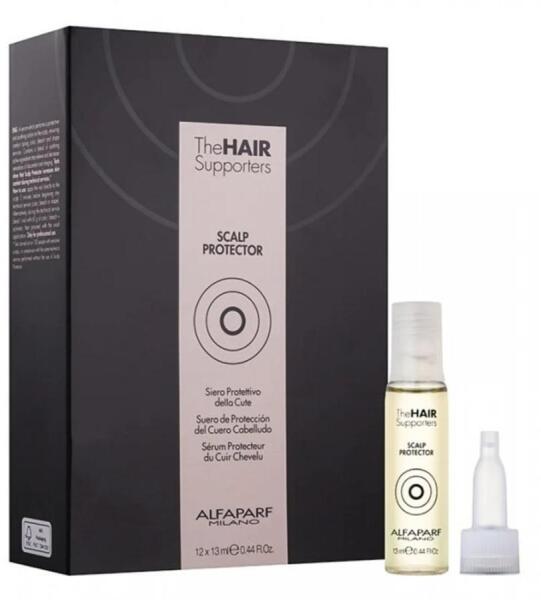 Alfaparf The Hair Supporters Scalp Protector fejbőrvédő ampulla, 12x13 ml- Fejbőrvédő és nyugtató hatású szérum, amely komfortérzetet kölcsönöz a fejbőrnek a hajfestés és szőkítés során - Illatanyag- és parabénmentes fejbőrvédő ampulla Mikor ajánljuk a használatát? - Amikor a hajtőnél is szőkítjük a hajat - Akinek csípi a hajfesték a fejbőrét - Érzékeny fej