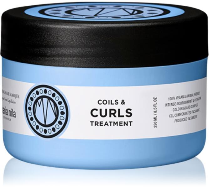 Maria Nila Coils & Curls Treatment Mask, 250 ml, Hajmaszkok nőknek, Úgy érzi, hogy a hajának intenzívebb ápolásra van szüksége, mint amit a balzsamok vagy kondicionálók nyújtani tudnak? A kiváló Maria Nila Coils & Curls Treatment Mask hajmaszk remekül színesíti hajápolási rutinját. A speciális problémák megoldását célzó tápláló anyagok magas koncentrációján