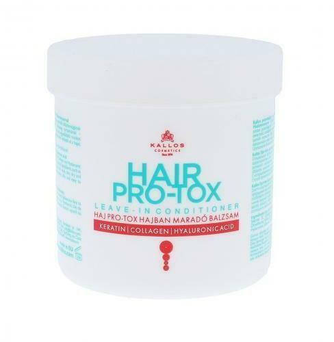 Kallos KONDICIONÁLÓ - PRO-TOX Tartalmaz a keratin, a kollagén és a hialuronsav hosszú távú hatása volument ad a hajnak, táplálja és hidratálja a gyenge, törékeny, száraz és törékeny hajat, miközben nem nehezíti el. Ez a balzsam tápláló panthenolt, kókusz- és olívaolajat is tartalmaz, amelyek gondoskodnak a haj megfelelő táplálásáról és hidratálásáról. Használa