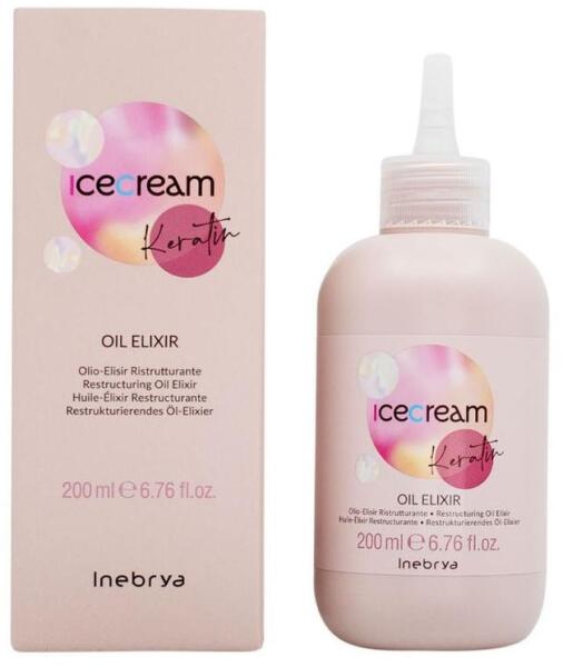 Inebrya Ice Cream Keratin Oil Elixir, 200 ml - Hajújraépítő olaj elixir keratinnal és Macadamia olajjal - Száraz, roncsolt és festett hajra ajánljuk a használatát - Különleges hatóanyag koncentrációjú formula, amely nem zsíros - Hatékonyan táplálja, hidratálja és gubanctalanítha a hajat - Rendkívüli puhaságot és selymességet biztosít még a legproblémásabb hajnak is