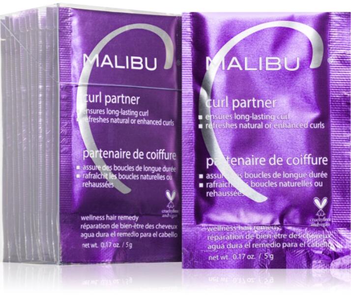 Malibu C Curl Partner, 12x5 ml, Hajmaszkok nőknek, Tulajdonságok: intenzíven hidratál megújítja a haj szerkezetét kifejezetten hullámos és göndör hajhoz való Használata: Hagyja a csomagoláson jelzett ideig hatni, majd alaposan öblítse le.