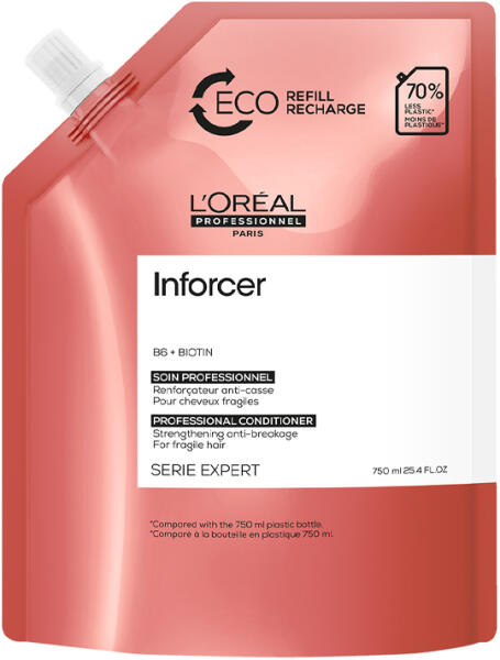 Erős, ellenálló hajra vágyik? A L’Oréal Professionnel Serie Expert Inforcer erősítő kondicionáló különösen a töredezett, károsult hajra lett kifejlesztve. Intenzív, mélyreható táplálást nyújt hajának, és visszaadja egészséges ragyogását, és puha tapintását. Haja így ellenállóbb lesz, frizurája pedig mindig hibátlan. Tulajdonságai: - a hajhagymáktól egészen