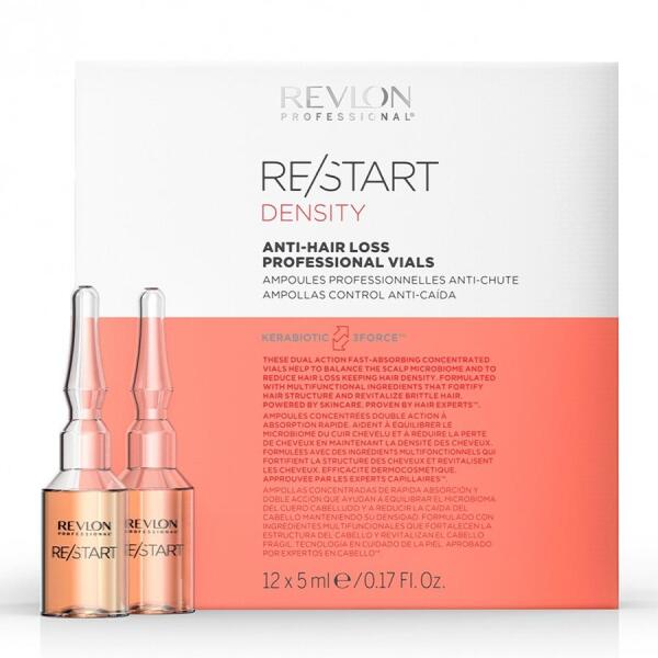 Revlon Restart Density hajhullás elleni ampulla, 12x5 ml - Kiegyensúlyozza a fejbőr mikrobiomját - Egyesíti a bőrápoló hatóanyagok és a többfunkciós összetevők hatásait- Csökkenti a hajhullást- Megőrzi a haj sűrűségét Használata: - Vigye fel közvetlenül a tiszta száraz vagy törölközőszáraz fejbőrre - Ne öblítse le! Tipp: Fejbőrmasszázzsal együtt még hatékonya
