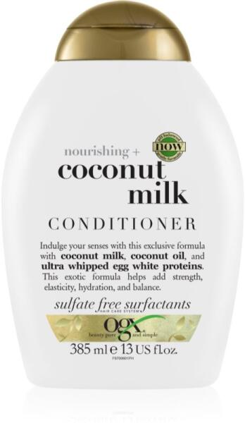 OGX Coconut Milk, 385 ml, Hajkondicionálók nőknek, A minőségi OGX Coconut Milk kondicionáló biztosítja a haj könnyű kifésülhetőségét és a szép és egészséges haj számára nélkülözhetetlen táplálást. Tulajdonságok: szükséges mértékben hidratál megkönnyíti a kifésülést és a haj formázását lezárja a hajszálak felszínét, ellenállóbbá teszi azokat helyre