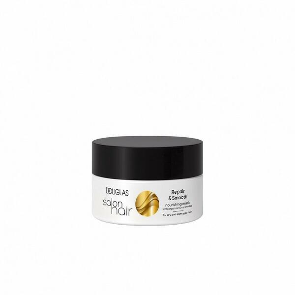 Szeretnéd újrateremteni azt a hajszalon érzést otthon? A Douglas Salon Hair Repair & Smooth tápláló maszk olvadó textúrájával intenzíven helyreállítja a száraz és sérült hajat a hosszától a hajvégekig. Használata után ez a maszk intenzíven táplálja a hajat akár 48 órán keresztül, puhábbá és védve lesz a töredezés ellen. Argán olajat és ceramidokat tartalma