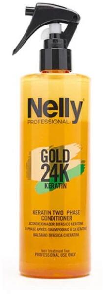 Nelly 24K tápláló 2 fázisú kondicionáló, 400 ml - Azonnali hatású hajbalzsam - Megkönnyíti a haj kifésülését - Olaj nélkül kondicionálja a hajat - A vízalapú fázis javítja a fésülhetőséget, simaságot és fényt biztosít - Az opálos fázis kondicionáló réteget képez a hajon - Napvédelmet is nyújt Használata: - Alaposan rázza fel a flakont, hogy a két fázis ös