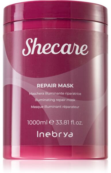 Inebrya Shecare Repair Mask, 1000 ml, Hajmaszkok nőknek, Úgy érzi, hogy a hajának intenzívebb ápolásra van szüksége, mint amit a balzsamok vagy kondicionálók nyújtani tudnak? A kiváló Inebrya Shecare Repair Mask hajmaszk remekül színesíti hajápolási rutinját. A speciális problémák megoldását célzó tápláló anyagok magas koncentrációjának köszönhetően visszaadja a