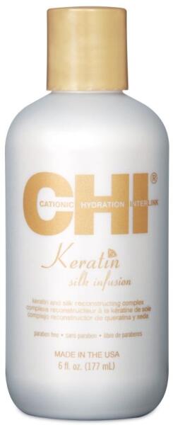 CHI Keratin Silk Infusion erős kúra, amelyik helyreállítja, gyógyítja és hidratálja a száraz és sérült hajat. Természetes keratin helyreállítja a haj külső struktúráját. A selyem mélyen behatol a hajszálba, megtartja benne a nedvességet és kisimítja a külső szerkezetét. Jelentősen javítja a haj rugalmasságát és megakadályozza a töredezését. Az intenzív hidrat