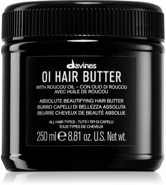 Davines OI Hair Butter, 250 ml, Hajmaszkok nőknek, Tulajdonságok: teljes hosszukban regenerálja a hajszálakat káprázatos fényt ad a hajnak a haj selymes tapintásúvá válik Használata: Nedves, samponnal megmosott hajra alkalmazza. Hagyja a csomagoláson jelzett ideig hatni, majd alaposan öblítse le.