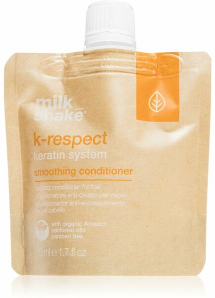 Milk Shake K-Respect, 50 ml, Kondicionálók unisex, A minőségi Milk Shake K-Respect kondicionáló biztosítja a haj könnyű kifésülhetőségét és a szép és egészséges haj számára nélkülözhetetlen táplálást. Tulajdonságok: kisimítja a hajat és meggátolja a kreppesedését ragyogó fényt ad a hajnak Használata: Vigye fel a samponnal megmosott hajára. Hagyja kis ideig hatn