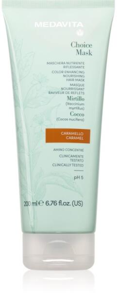 Medavita Choice Caramel, 200 ml, Hajmaszkok nőknek, A minőségi Medavita Choice hajpakolás elengedhetetlenül hozzá tartozik a rituális hajápoláshoz. Kényeztesse haját egy rövid regenerálással és meglátja, hogy vitalitással és szépséggel hálálja majd meg. Tulajdonságok: teljes hosszukban regenerálja a hajszálakat megkönnyíti a haj kifésülését és így megelőzi a káro