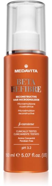 Medavita Beta Refibre Reconstructive Hair Microemulsion, 150 ml, Hajszérumok nőknek, Az öblítést nem igénylő Medavita Beta Refibre hajápoló mindent megad a hajnak hajmosás után, amire éppen szüksége van. Tulajdonságok: megfelelő hidratálást nyújt a hajnak intenzív fényt ad a hajnak helyreállítja a száraz, törékeny és sérült hajat védi a hajat a külső hatásoktól