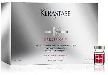 A Kérastase Specifique intenzív, hajhullás elleni kúra gyors és látható eredményeket hoz. Megelőzi a hajhullást, hozzájárul a fejbőr rugalmasságához, de az újonnan növő hajszálakat is ellenállóbbá teszi. Már 6 hét után csökkenti a hajhullás mértékét, klinikailag tesztelt. Megóvja a hajat a fésülés és formázás során bekövetkező töredezéstől és károsodás