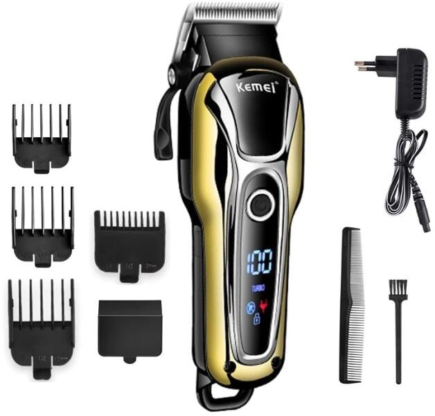 Leírás:A professzionális Kemei KM-1990 hajvágó egy tökéletes eszköz az egyszerű, gyors, tökéletes hajvágáshoz. A készülék LCD-kijelzővel, erős motorral rendelkezik, amely lehetővé teszi amatőr felhasználók számára is az egyszerű hajvágást. Jellemzők:Intelligens pozicionáló fésűk4 állítható vezetőfésű (3mm / 6mm / 10mm / 13mm) . Állítható kúpos karA precí