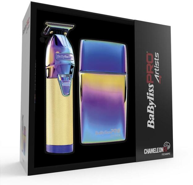 A CHAMELEONFX COLLECTION készlet egy SKELETONFX kontúrnyírót és egy FOILFX02 vezetékes/akkumulátoros borotvát tartalmaz új irizáló színben. . Borotva és kontúrnyíró csomag A BaBylissPRO 4Artists termékcsalád teljesen fémből készült professzionális borotvái tökéletes keverékei a luxusnak, a designnak és a csúcstechnológiának. Úgy tervezték őket, hogy tökéletes es