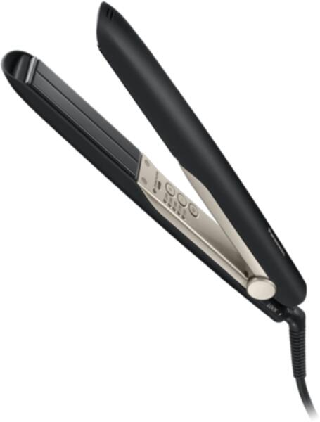 Panasonic EH-HS0E-K825 hajvasaló lemez, nanotechnológia, nagy sebességű intelligens hőmérséklet-érzékelő, továbbfejlesztett mobil és rugalmas 3D kerámialapok fényes és sima felülettel, gazdagító + fejlett ápolási termékcsalád Kifogástalan formázás és kiegyenesítés a készülék egyetlen mozdulatával az intelligens hőérzékelőknek köszönhetően Hajvasalónk fejlett