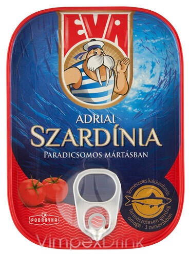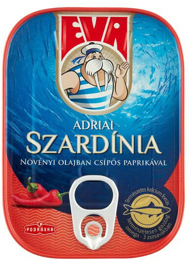 Vásárold meg most szuper áron termékünket és válogass több mint 5000 féle között! A kamraellato. hu oldalon nincs kockázat, ugyanis mindent valós magyarországi készlet ről szállítunk ki. Megnevezés: Eva adriai szardínia növényi olajban csípős paprikával 100 g Összetevők: SZARDÍNIA (Sardina pilchardus) 70%, Szójababolaj 25%, Csípős paprika 4%, Jódozott étkezési só