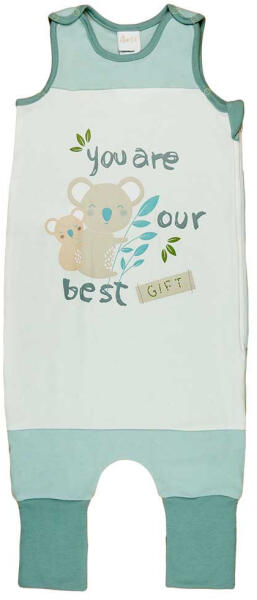 Ragyogj a színes álmok birodalmában ezzel a zöld színű, koalás mintával díszített ujjatlan tipegő hálózsákkal! Különleges kialakításának köszönhetően oldalt cipzárral, vállon pedig nikkelmentes patenttal záródik, garantálva a biztonságot és kényelmet a legkisebbeknek is. A hálózsák lábfejnél ráhúzható, így a baba mozgását sem gátolja, miközben remek hősz
