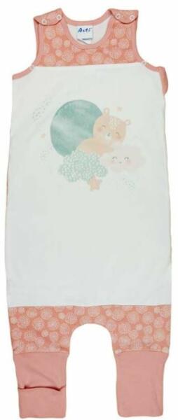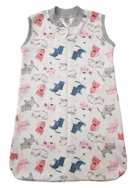 Ujjatlan pamut tipegő hálózsák édes mintával díszítve a vastagsága 1 TOG. Minőségi magyar termék Maci mintával nyomott, oldalt cipzáras, vállon patentos, lábfejnél ráhúzható, ujjatlan pamut tipegő hálózsák. A termék nikkelmentes patenttal készül. A patent nem tartalmaz nikkelt, ezért nem vált ki allergiás reakciót az erre érzékeny babáknál. Méretválasztás: A t