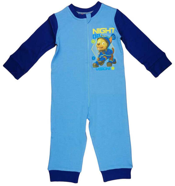 Fedezd fel a Mancs őrjárat kalandjait álmodban is ezzel a stílusos, overálos pizsamával! A kék színű, cipzáras pizsama elején a népszerű rajzfilmből ismert két bájos kutyus díszeleg, ami garantáltan megdobogtatja minden kisfiú szívét. Kiváló minőségű, 100% pamutból készült, ami finom tapintású és maximális kényelmet biztosít viselőjének. A színtartó, jól mos