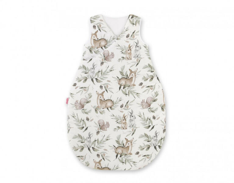 Állatmintás ujjatlan bélelt tipegő hálózsák 3,5 TOG Cuki róka mintával nyomott, vállon patentos, oldalán szétcipzározható, ujjatlan, bélelt vastag tipegő hálózsák. Lábrésze könnyen felhúzható, így a gyermek könnyen tud benne totyogni, mászkálni. Elalvás után akár a lábfejére lehet húzni a visszahajtott részt, így nem fázik meg. Anyaga: 100% Pamut Töltőanyag: