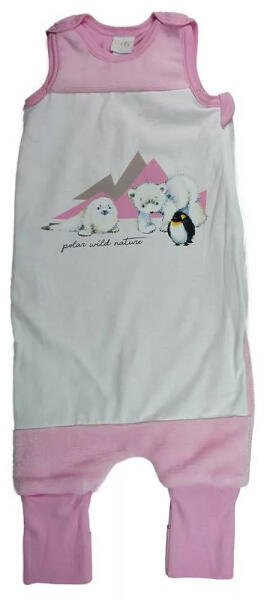 Wellsoft ujjatlan tipegő hálózsák jegesmedve mintával 3,5 TOG Jegesmedve mintával nyomott oldalt cipzáras, vállon patentos, lábfejnél ráhúzható, ujjatlan pamut tipegő hálózsák. Minőségi magyar termék Anyaga: 100% poliester, 65% pamut, 35% poliester Bélés: 100% pamut, Minőség: I. osztály A termék nikkelmentes patenttal készül. A patent nem tartalmaz nikkelt, ezért nem v