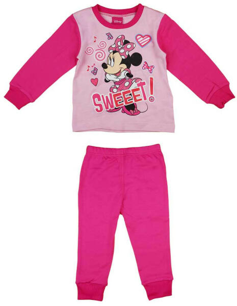 Hozd mesés álmaikhoz közelebb kislányodat ezzel a vidám Minnie egér mintás kétrészes pizsamával! Az eredeti Disney termék lányos színvilága és az ikonikus Minnie egér karaktere garantáltan mosolyt csal az arcára. A pizsama 100% minőségi pamutból készült, ami szín- és formatartó, valamint könnyen kezelhető. Tökéletes választás az esti meséhez, vagy a hétvégi regge