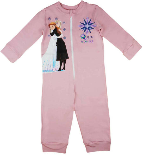 Készüljön fel egy igazán varázslatos alvásra ezzel a csodálatos Disney Jégvarázs II. overálos pizsamával! A pizsama elöl cipzáros kialakítása könnyű öltözködést biztosít a kislányok számára. A púderszínű alapon megjelenő Jégvarázs minta garantáltan elvarázsolja a kicsiket, és édes álmokat hoz számukra. A termék anyaga 100% pamut, ami puha, kényelmes viseletet