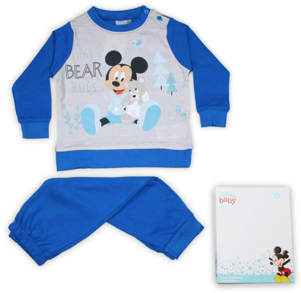 Disney Mickey egér jersey pizsama kisfiúknak 100% pamut alapanyagból. Kényelmes bőrbarát viselet. Méret: 80 A termék díszdobozban kapható.