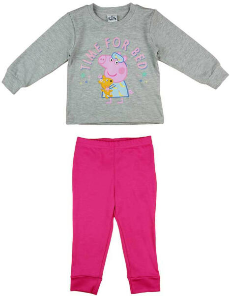 Kedves kislányod éjszakáit varázsolja meséssé ez a két részes Peppa malac mintás pizsama! A szett hosszú ujjú felsőből, melyet a kedves Peppa malac karaktere díszít, valamint gumis derekú nadrágból áll, biztosítva a kényelmes alvást és a könnyű öltözködést. A szürke színű, száz százalék pamutból készült pizsama hűvösebb estéken is melegen tartja a kicsiket,