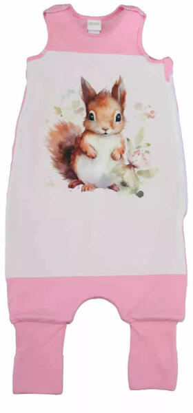 Állatmintás ujjatlan bélelt tipegő hálózsák 3,5 TOG Cuki mókus mintával nyomott, vállon patentos, oldalán szétcipzározható, ujjatlan, bélelt vastag tipegő hálózsák. Lábrésze könnyen felhúzható, így a gyermek könnyen tud benne totyogni, mászkálni. Elalvás után akár a lábfejére lehet húzni a visszahajtott részt, így nem fázik meg. Anyaga: 100% Pamut Töltőanyag: