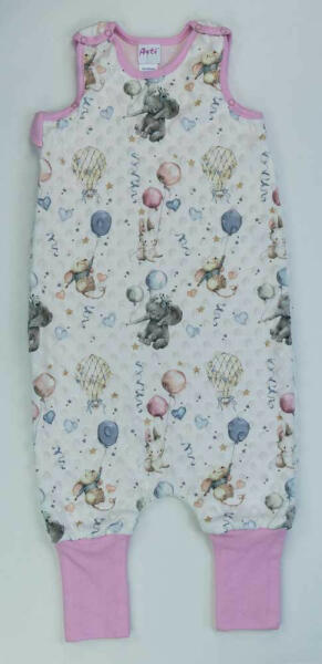 Ujjatlan Minky tipegő hálózsák Elefántos mintával 2 TOG Egy igazi kis kalandra indulhat a gyermeked ezzel a gyönyörű, és különleges végynyomott minky anyagból készült tipegő hálózsákkal. Az ujjatlan, vállon patentos, oldalán szétcipzározható, 2 rétegű hálózsák nemcsak kényelmes, de praktikus is. A lábrésze könnyedén felhúzható, így a pici gond nélkül tud tot