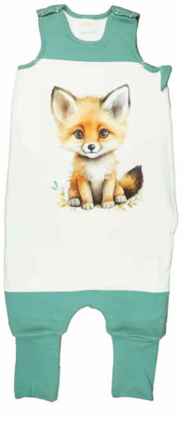 Állatmintás ujjatlan bélelt tipegő hálózsák 3,5 TOG Cuki róka mintával nyomott, vállon patentos, oldalán szétcipzározható, ujjatlan, bélelt vastag tipegő hálózsák. Lábrésze könnyen felhúzható, így a gyermek könnyen tud benne totyogni, mászkálni. Elalvás után akár a lábfejére lehet húzni a visszahajtott részt, így nem fázik meg. Anyaga: 100% Pamut Töltőanyag: