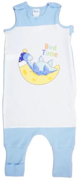 Ujjatlan pamut tipegő hálózsák édes mintával díszítve a vastagsága 1 TOG. Minőségi magyar termék Dínó mintával nyomott, oldalt cipzáras, vállon patentos, lábfejnél ráhúzható, ujjatlan pamut tipegő hálózsák. A termék nikkelmentes patenttal készül. A patent nem tartalmaz nikkelt, ezért nem vált ki allergiás reakciót az erre érzékeny babáknál. Méretválasztás: A