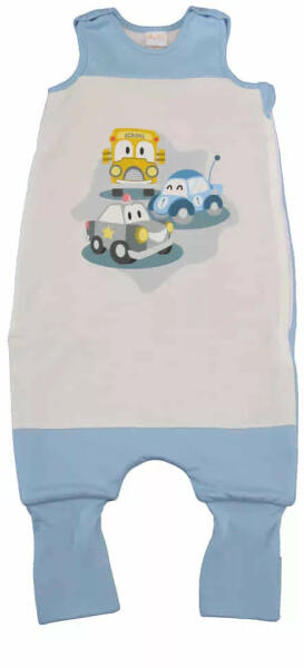 Autós ujjatlan bélelt tipegő hálózsák 3,5 TOGVagány autós mintával nyomott, vállon patentos, oldalán szétcipzározható, ujjatlan, bélelt vastag tipegő hálózsák. Lábrésze könnyen felhúzható, így a gyermek könnyen tud benne totyogni, mászkálni. Elalvás után akár a lábfejére lehet húzni a visszahajtott részt, így nem fázik meg. Anyaga: 100% PamutTöltőanyag: 65% P