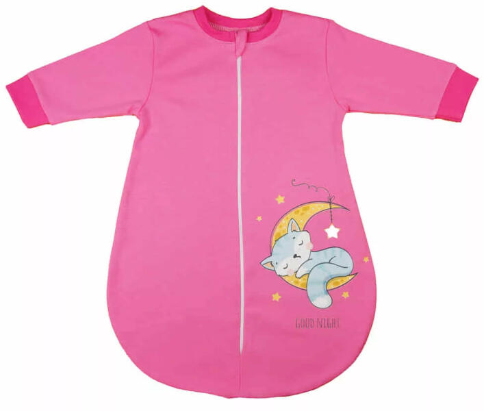 Hosszú ujjú vékony pamut hálózsák Cica mintával 1 TOG Cica mintával nyomott, elöl cipzáras, vékony pamut anyagból készült hálózsák. Minőségi magyar termék Anyaga: 100% pamutMinőség: I. osztályMagyarország, EU