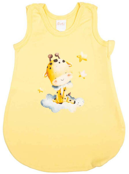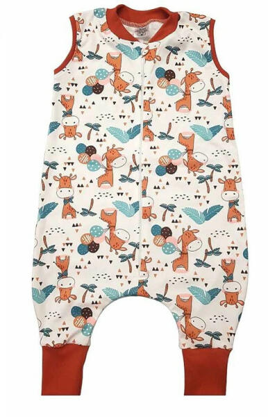Ujjatlan vékony pamut hálózsák Zsiráfos mintával 1 TOG Öltöztesse álomba kisbabáját ebben a sárga, zsiráf mintás, ujjatlan hálózsákban! Az oldalt cipzáras, vállon patentos kialakításnak köszönhetően könnyedén felvehető és levehető, így az éjszakai pelenkázás sem lesz gond. A hálózsák 100% pamut anyagból készült, ami puha érintésű és légáteresztő, így