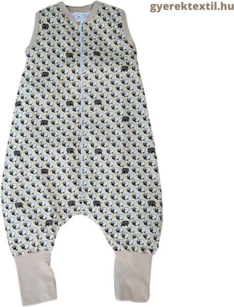 Állatmintás ujjatlan bélelt tipegő hálózsák 2,5 TOGÁllatos mintával nyomott, vállon patentos, oldalán szétcipzározható, ujjatlan, bélelt vastag tipegő hálózsák. Lábrésze könnyen felhúzható, így a gyermek könnyen tud benne totyogni, mászkálni. Elalvás után akár a lábfejére lehet húzni a visszahajtott részt, így nem fázik meg. Anyaga: 100% PamutTöltőanyag: 65%