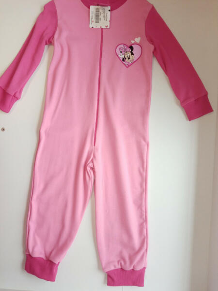 Disney Minnie overálos kislány pizsama Eredeti Disney termékMinőségi, 100% pamut elején cipzáras kislány pizsama vidám Minnie egér mintával díszítve. Magyar termék Minőség: I. oszt. Anyaga: 100% pamut