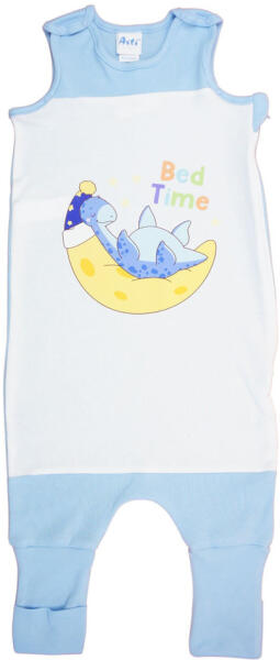 Ujjatlan tipegő hálózsák Dínós mintával 1 TOG Egy igazi kis kalandra indulhat a gyermeked ezzel a gyönyörű, kék színű dínós mintával nyomott tipegő hálózsákkal. Az ujjatlan, vállon patentos, oldalán szétcipzározható, 1 rétegű hálózsák nemcsak kényelmes, de praktikus is. A lábrésze könnyedén felhúzható, így a pici gond nélkül tud totyogni és mászkálni benn
