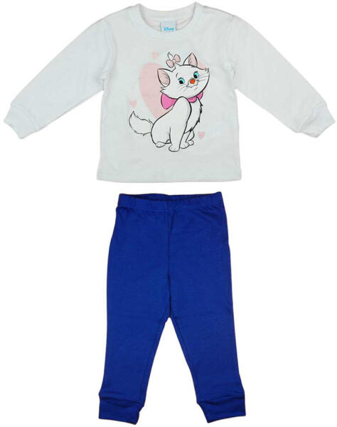 Cukiság és kényelem jellemzi ezt a 2 részes kislány pizsamát, amelyen a kedves Marie cica mintája díszeleg. Az eredeti Disney termék, ami garantálja a minőséget és a tartósságot. A hosszú ujjú pamut felső és a gumis derekú nadrág párosa biztosítja a kényelmet az éjszaka folyamán, így kislányod nyugodtan álmodhat a cicás kalandokról! Az egész darab 100% pamutból ké