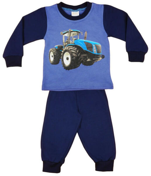Kedves kisfiad biztosan mosolyogva bújik ágyba ebben a traktor mintás hosszú pizsamában! A kék színű, 100% pamutból készült pizsamaszettben kényelmesen álomba szenderülhet, míg a traktor minta édes álmokról gondoskodik. A pizsama felsőn található a vidám traktor minta, míg az alsó egyszerű, egyszínű kialakítású, így tökéletesen kiegészítve egymást. A pizsama Mag