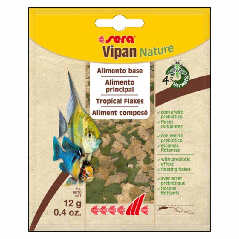 Sera Vipan Nature egy kiegyensúlyozott és egészséges táplálék valamennyi díszhalnak a társas akváriumokban. A Sera díszhal táplálékokat különösen kíméletesen állítják elő. A vitaminok, ásványi anyagok, nyomelemek és a gyógynövények hatása megmarad. Természetes nyersanyagokkal a Sera Vipan megadja Önnek a biztonságot, hogy díszhalait a társas akváriumban optimál