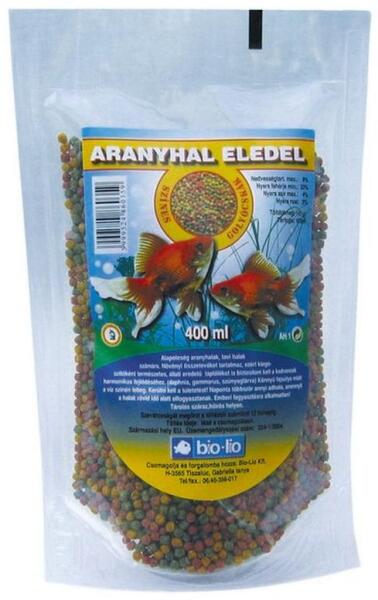 Termék részletekBio-Lio Aranyhal táp. Alapeleség aranyhalak számára. Apró golyós. Liofilizált eljárással készült tartósítószert nem tartalmaz. Könnyű fajsúlya révén a a víz felszínén lebeg. Növényi összetevőket tartalmaz ezért javasoljuk hogy állati eredetű kiegészítő táplálékot is adjunk mellé. Például: gammarus szúnyoglárva. Etetési útmutató: naponta többször amennyi