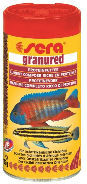 Termék részletekFehérjében gazdag granulátum táplálék húsevő cichlidák számára. Húsfeldolgozási melléktermékek, garnélaliszt, természetes ásványi anyagok és nyomelemek valamint a karotinban gazdag spirulina-alga teszik a sera granured terméket a pompás díszhalak ideális fő táplálékává.