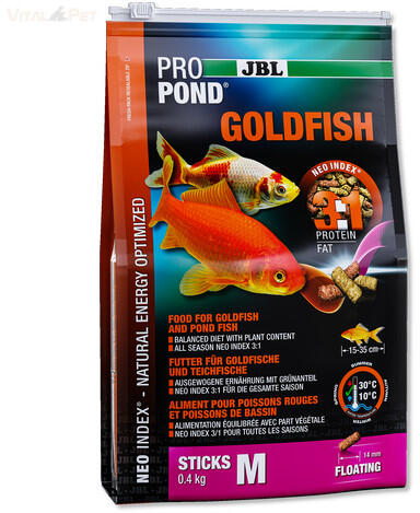 Termék részletekJBL ProPond Goldfish – Tökéletes táplálék közepes méretű aranyhalaknak! A természet erejével készült, kiegyensúlyozott összetételű eledel egészséges és vidám halakért. JBL ProPond Goldfish M – A legjobb választás aranyhaladnak! A JBL ProPond Goldfish M egy prémium minőségű, teljes értékű haleleség, amely kifejezetten a 15-35 cm közötti aranyhalak igényeire let