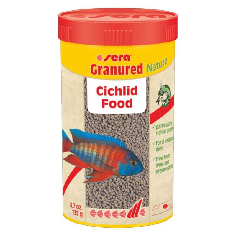 Granulált eleség kelet-afrikai sügérek számára. A Sera Granugreen Nature a finoman előállított, színezékeket és tartósítószereket nem tartalmazó szemcsékből álló élelmiszer a kisebb, elsősorban növényeket és perifitont fogyasztó cichlidek számára. Ez magában foglalja a kelet-afrikai sügér fajok sokaságát. Kiváló minőségű növényi összetevők, például spiru