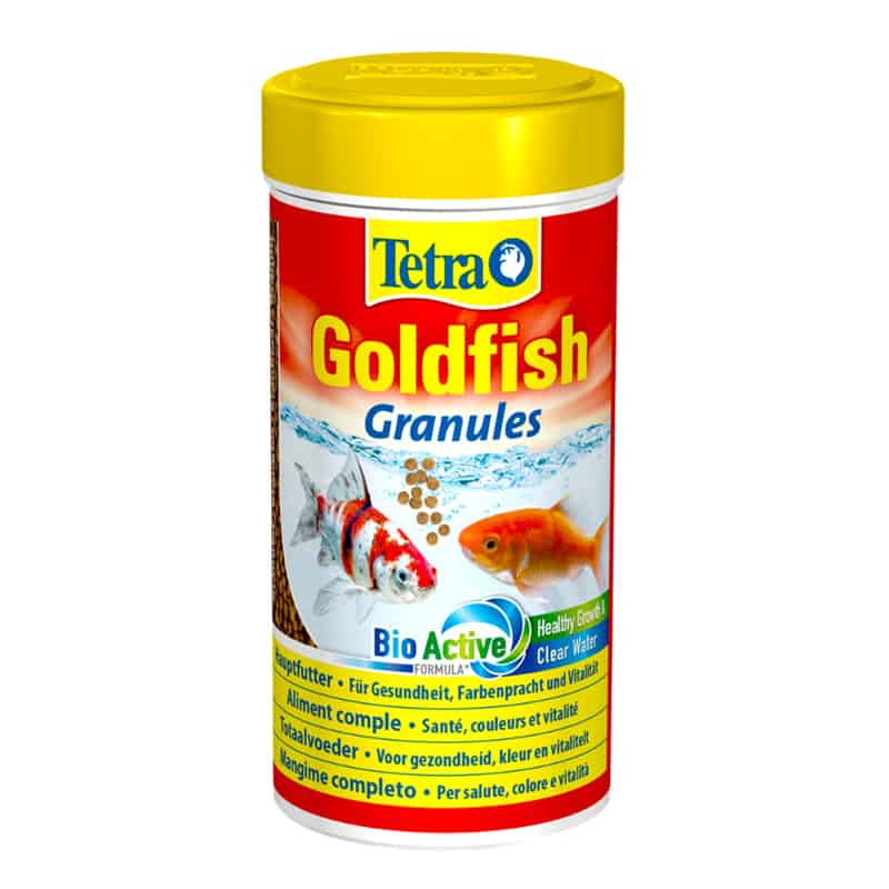 Tetra Goldfish Granules Lebegő granulátum minden aranyhalnak és más hideg vízi halaknak. A granulátumot a halak teljes egészében elfogyasztják Tápanyagdús, változatos étrendet biztosít BioActive formulával - hogy a hal hosszú és egészséges életet éljen. Támogatja a halak egészségét, természetes színezetét és élénkségét Lebegő granulátum minden aranyhalnak és má